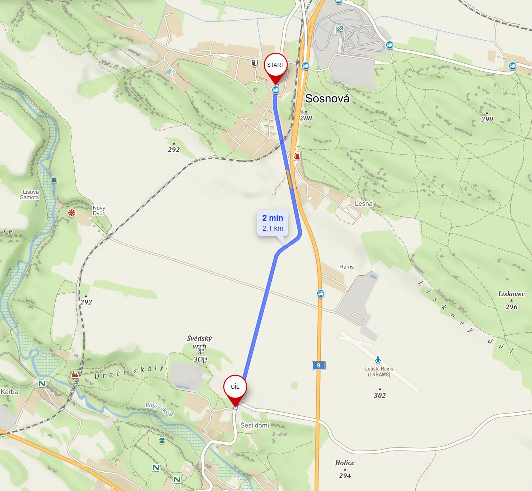 - Mapa celého úseku.
